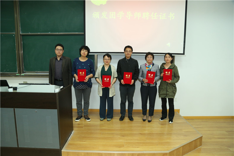 2015年10月13日,由学院团委主办,团支书读书会承办的“yl8cc永利官网团学导师聘任仪式”在yl8cc永利官网明故宫校区A13楼201教室举行。在嘹亮的共青团团歌声中,团委书记黄超峰为校图书馆赵晨洁、王茜、鲁克成、吴丽春、叶虹老师颁发团学导师聘书,聘请他们为我院团委首批团学导师,以助力我院团建工作。