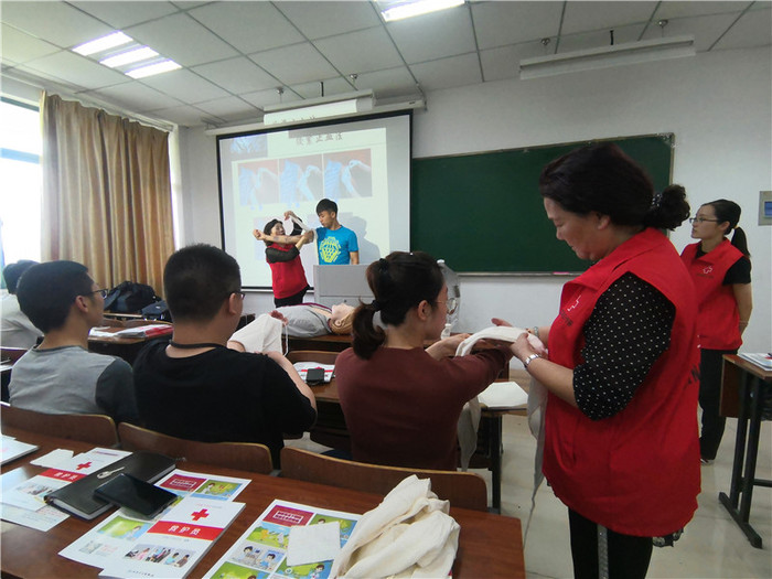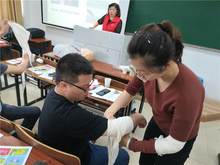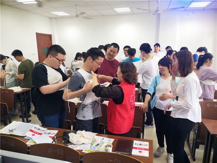 为进一步提高辅导员和学生骨干的应急救护能力,yl8cc永利官网举办了初级救护员培训课程。着重普及应急救护知识,提高辅导员和学生骨干在突发事件和意外伤害中的应急处置水平及自救互救能力、构建科学化的学生安全急救工作机制。51112日,学院邀请南京市红十字会老师来我院对学生辅导员、应急协会、基层团支部学生骨干等36名学员开展应急救护技能培训。