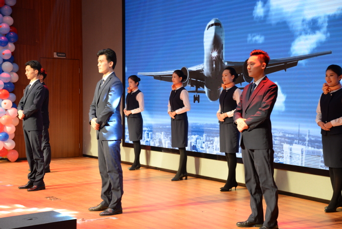经一段时间的精心排练和多轮遴选,本次才艺展演共有11个节目最终入围,节目形式包含歌曲、舞蹈、小品、形象展示、乐器、朗诵、合唱等多个类型。活动开始前的视频暖场环节,LED屏幕播放了学校“青春为祖国歌唱”主题MV——《歌唱祖国》,参会师生激情澎湃,挥舞手中的小国旗全体起立大合唱,场面壮观感人。黄王洁、陈靓宁等同学的开场舞瞬间点燃会场热情,吉他弹唱《那时正好》演奏了大学生活的美好旋律,航空服务礼仪风采展示为青年大学生的文明举止树立了典范,佟硕同学带来的现代舞《老爸》完美演绎了以身传教的无言父爱,小品《考试风波》在幽默夸张的表演中严明了考风考纪,朱淑琪同学的二胡独奏《赛马》描绘了广阔无垠、万马奔腾的草原美景,2019级会计专业的朗诵《我的祖国》、马安琦等同学的民族舞《五十六个民族》、吴田田等同学的合唱《红旗飘飘》呼应主题,歌颂祖国,观众深受感染,现场掌声雷动。同学们以高水平的演绎、丰富的情感投入为师生奉献了一场青春激扬的视听盛宴。