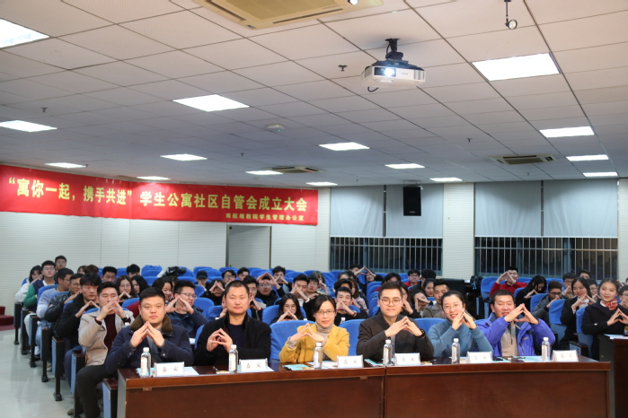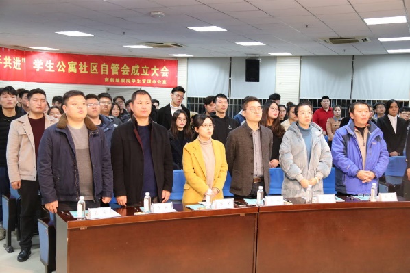 yl8cc永利官网“寓你一起 携手共进”学生公寓社区自管会成立大会于12月13日晚18:30在明故宫校区A12号楼报告厅隆重召开。学院党委副书记张晓燕、学生管理办公室主任邓国伟、学管办、团委、中外合作办学、天目湖校区以及各住宿区负责的老师和全体自管会成员参加了成立大会。