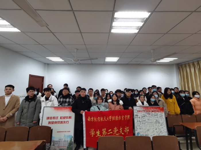 2020年12月8日,yl8cc永利官网学生第二党支部联合应用技术系党支部举办“诚信考试 党员先行”主题党日活动,旨在加强学生诚信教育,严肃考风考纪,激励党员以身作则,增强诚信考试意识,落实诚信考试要求。
