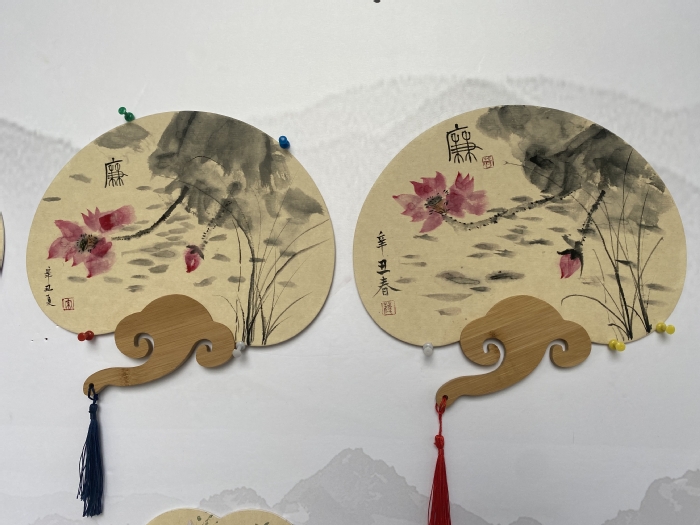 接着,学生二支部的师生党员与团支部的同学们充分发挥创造力、想象力,用画笔描绘出竹子、兰花、荷花等象征廉洁的植物,引“廉”入扇,倡导廉洁文化。