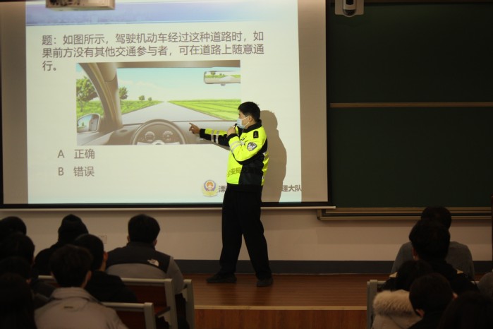 讲座中,史凯华警官从交通法规、交通安全注意事项等角度,向同学们普及了交通安全的相关知识,对网约车安全、道路行车安全等具体案例进行了分析,提醒同学们要结伴出行、安全乘车、文明驾驶。