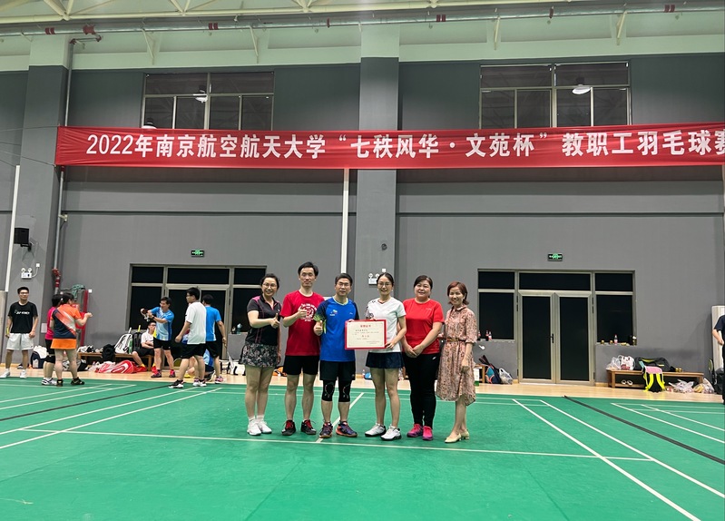 6月13-17日,由校工会主办,图书馆和体育部协办的2022年yl8cc永利官网”七秩风华.文苑杯”教职工羽毛球赛在将军路校区体育馆举行。由王伟、郑骏、尹春苹、王娅、黄山五人组成的学院羽毛球队参加比赛并荣获第二名。