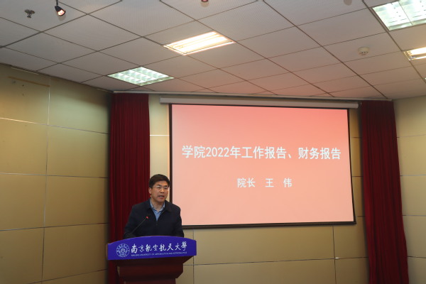 王伟在学院2022年工作报告中,回顾总结了学院过去一年里各方面工作所取得的成绩。他指出,学院2022年圆满完成了成人高等教育学生、自学考试项目学生、SQA项目学生的教学任务和培养工作。他强调,2023年要继续以党建为引领,夯实基础,保障各项事业稳定发展;深化改革,稳步提升各类办学项目质量;抢抓机遇,精准把握继续教育发展趋势;乘势而上,大胆探索学院事业转型发展,在继续教育领域彰显南航特色。此外,他还向大会报告了2022年度学院财务工作情况。