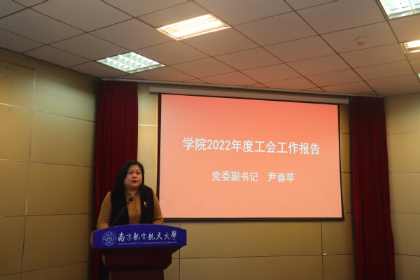 尹春苹在报告中,回顾和总结了2022年学院工会各项工作所取得的成绩和存在的不足,代表学院领导班子对所有工会会员为学院发展所做出的积极奉献表示衷心的感谢,同时对2023年学院工会工作提出了希望和建议。