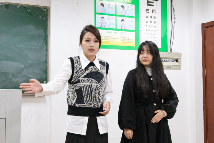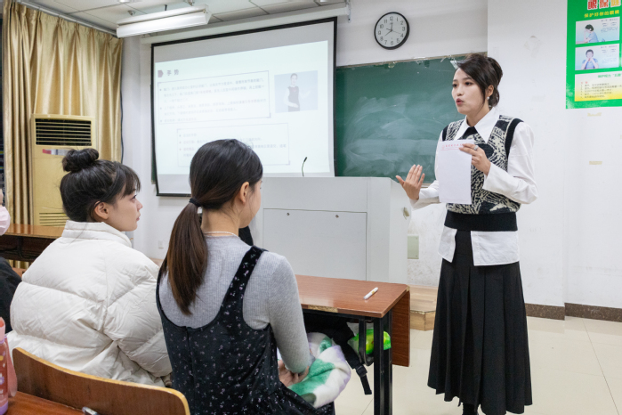 分享会伊始,曹老师引经据典,简要阐述了礼仪的由来,引导学生深刻理解礼仪的含义与基本形式。她围绕“仪容仪表、仪态礼仪、商务礼仪、日常礼仪”四个方面与同学们进行了深入的交流,她结合男/女士发型要求、妆容要求、妆容难点等方面进行了重点分享。她认为,无论是在校园内还是在未来的求职就业中,良好的礼仪习惯都能够给人留下深刻的印象。接着,她还邀请了几组同学通过情景演绎的方式介绍了蹲姿、站姿、走姿、坐姿、问候礼、握手礼、鞠躬礼等实用的礼仪技巧,讲授了礼仪规范的关键细节,同学们积极互动,争相提问,氛围活跃。最后,曹老师还勉励同学们要通过学习和实践礼仪,加强内在的修养和素质,不断培养自己的自信心、沟通能力和人际关系处理能力,为今后的职业发展打下坚实的基础。
