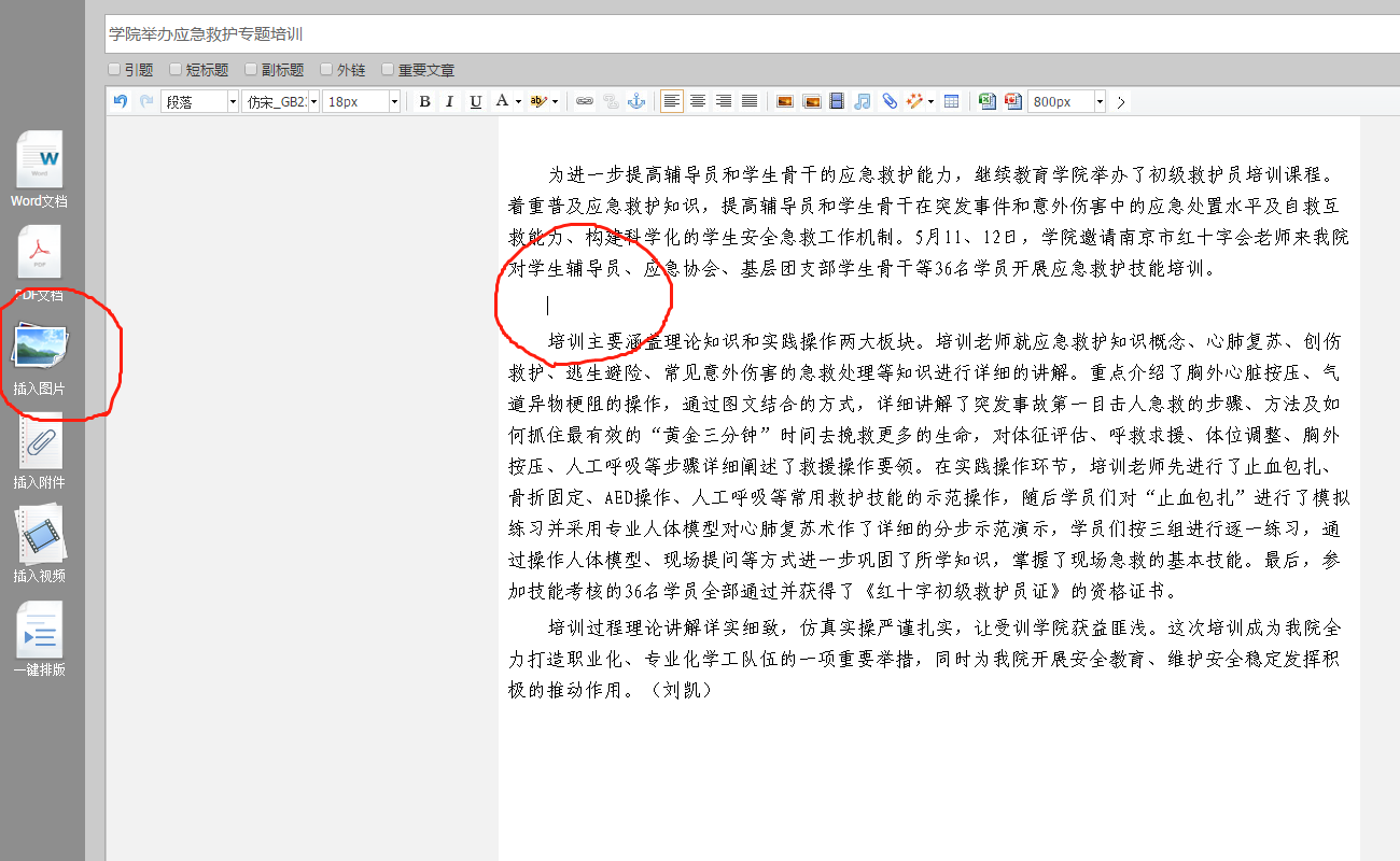 9.需插入图片时,将鼠标移到需要添加照片的位置,点击“插入图片”