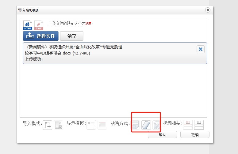 7.找到需要上传的文件,点击文件,点击“打开”,并选择“清除格式”