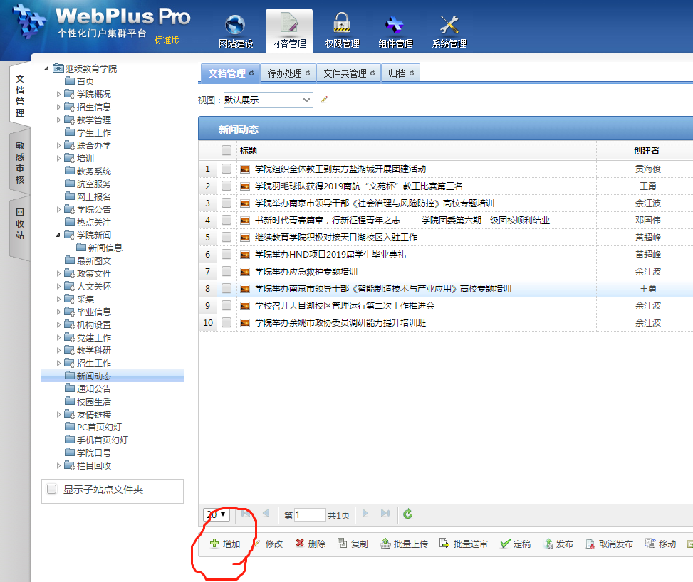 1.登录学院新闻发布页面