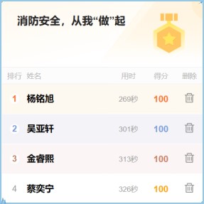 活动从5月13日开始到5月15日结束,共约800名同学积极参与了答题,活动从前期筹备到动员宣传再到统计评奖,各个环节都是经过了精心准备,特别是题目的设置,都是与同学们生活息息相关的消防安全知识,例如:火灾发生的原因、预防火灾发生的措施、灭火器材的使用、逃生自救技巧等,都是在向广大同学宣传和普及与必要的消防安全知识。希望通过本次知识竞赛,能让同学们在轻松愉快的氛围中学习和掌握消防安全知识,也借此机会呼吁广大师生,消防安全应入心、入脑,不能有丝毫马虎大意,我们共同筑起一道消防安全防线,守护美好的校园生活。