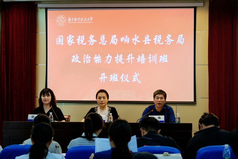 开班仪式上,王伟致欢迎辞,他向学员们介绍了南航七十余年的发展历程,并表示学院将持续努力发挥学校优势,为地方党建工作做好培训服务工作。响水县税务局党委委员、副局长黄莉莉做开班动员,她对培训学员提出三点要求:一是珍惜学习机会,二是严格遵守培训纪律,三是端正作风纪律。希望大家能够充分学习,收获满满而归。