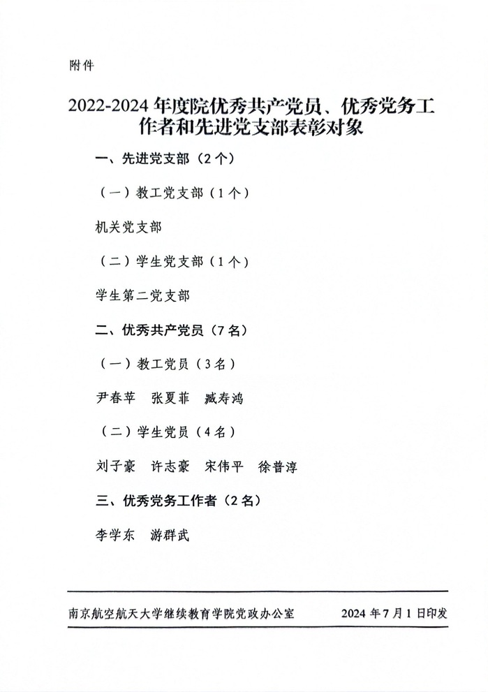 关于表彰2022-2024年度优秀共产党员、优秀党务工作者和先进党支部的决定