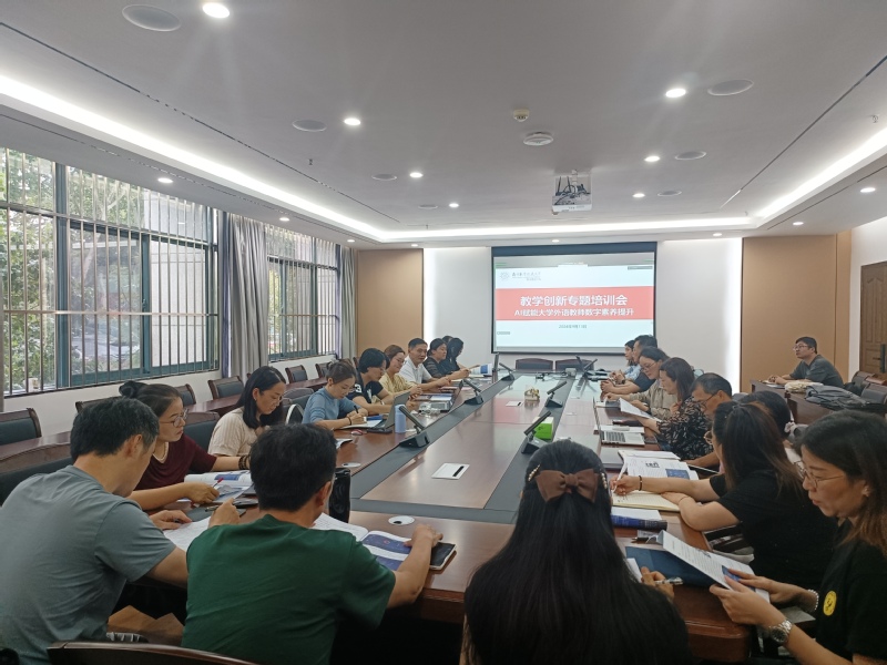 9月13日,yl8cc永利官网开展教师教学专题培训会,主题聚焦AI赋能大学英语教师数字素养提升。培训会由学院副院长江爱华主持,邀请了江苏瞰风信息科技有限公司总经理陶璐、蓝鸽集团江苏地区总经理刘聪等嘉宾主讲,应用外语系、国际合作办公室、自学考试部30余人参加培训。