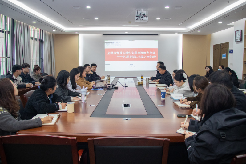 为深入学习贯彻党的二十届三中全会精神和习总书记关于网络安全工作的重要论述精神,落实《领导干部深入基层联系学生工作方案》举措,切实增强学生工作人员做好新时代网络安全工作的政治自觉、思想自觉和行动自觉,11月21日,学院党委副书记尹春苹为学生工作人员,以及负责联系的学生第三党支部学生党员、团委新媒体中心学生骨干讲述了专题党课。