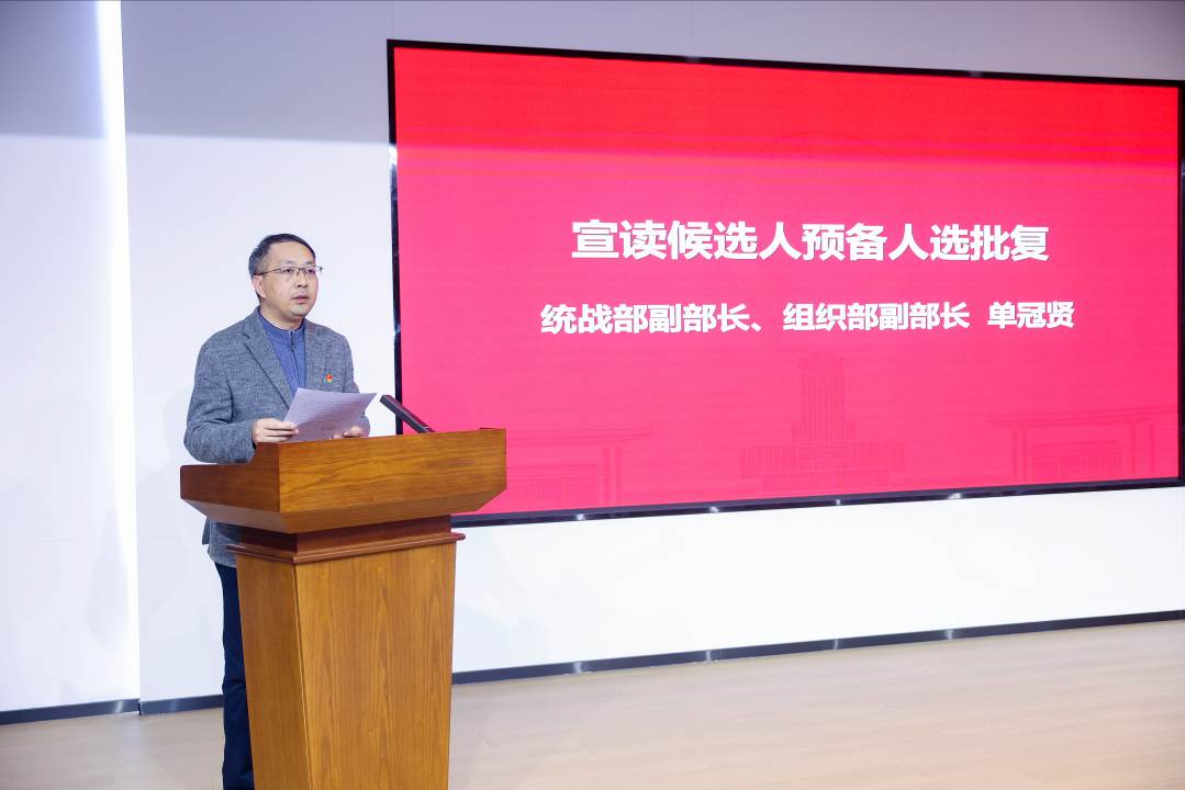 单冠贤代表学校党委宣读了《关于同意中国共产党yl8cc永利官网继续教育(高等职业技术)学院委员会换届选举请示的批复》。
