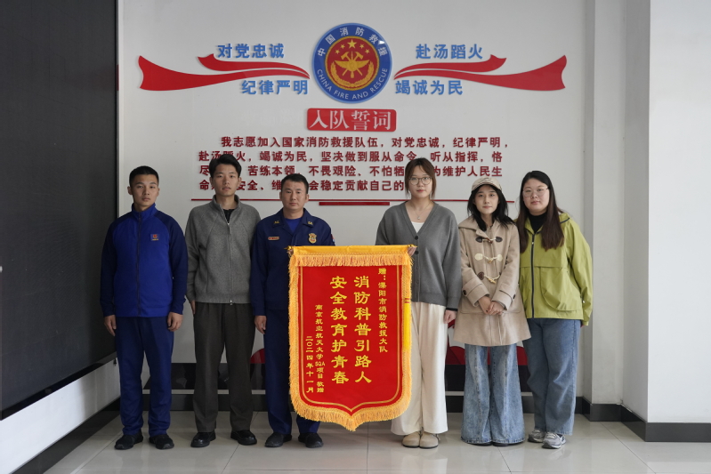 活动最后,师生特意送上了一面锦旗,上面赫然写着“消防安全引路人,安全教育护青春”。这面锦旗承载着师生们对消防救援人员满满的崇高敬意与衷心感谢,它无疑是对消防救援人员英勇付出的高度赞誉,更是激励着他们在守护人民平安的道路上继续奋勇前行的强大动力。