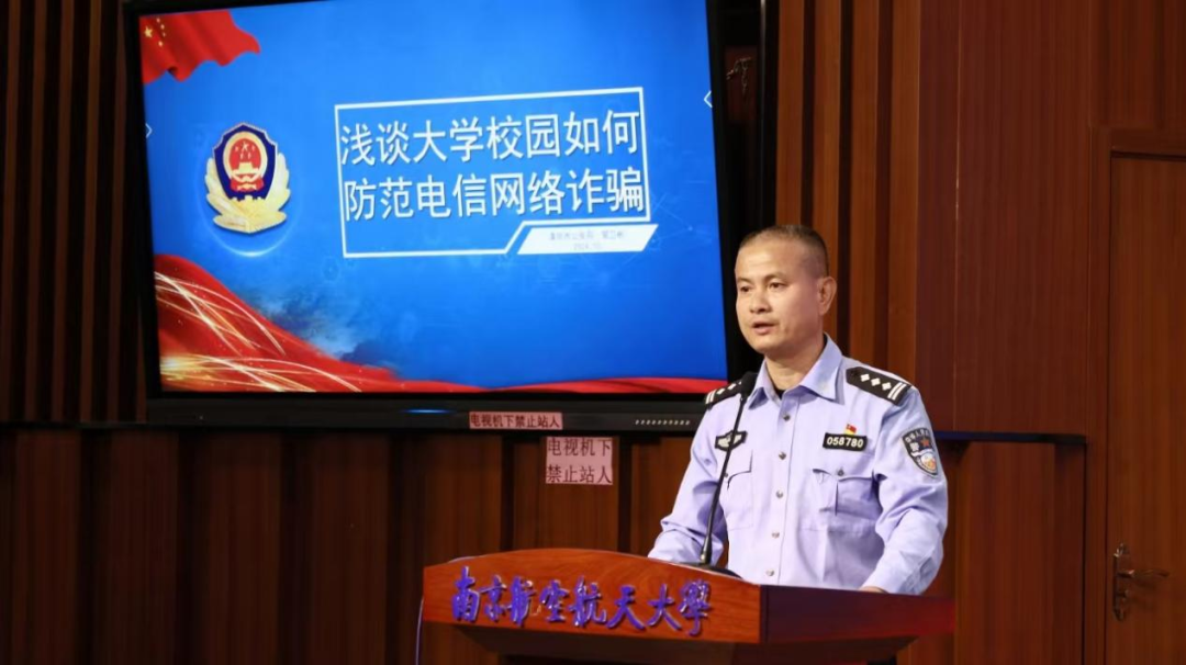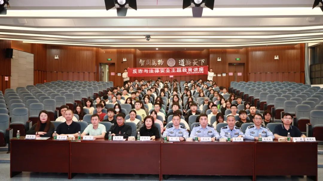 为深入学习贯彻党的二十届三中全会精神和学校安全工作会议精神,进一步增强师生防范电信网络诈骗的法律意识,提升校园安全防范水平。10月17日,yl8cc永利官网在天目湖校区巡天楼一楼报告厅进行了“天目护航”反诈与法律安全教育讲座。溧阳市公安局治安警察大队副大队长周剑、古县派出所副所长周立群、治安警察大队管卫彬、史筱瑜;yl8cc永利官网天目湖校区党工委副书记、学生处副处长贡海俊、yl8cc永利官网党委副书记尹春苹和全体2024级新生参加了讲座。
