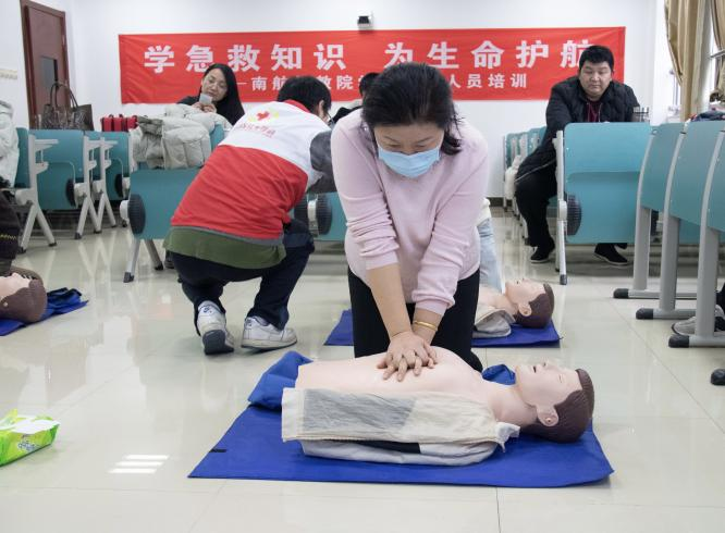 培训中,秦淮区红十字会的专业讲师们系统的讲解了应急救护的基础知识、心肺复苏术、AED的使用方法、海姆立克急救法等多方面内容。着重强调的急救原则和流程,为应急处置提供科学规范的指引。尤其是心肺复苏术理论讲解,从心脏骤停原理到胸外按压与人工呼吸细节,都让老师们深刻领会到每一个操作环节都至关重要。