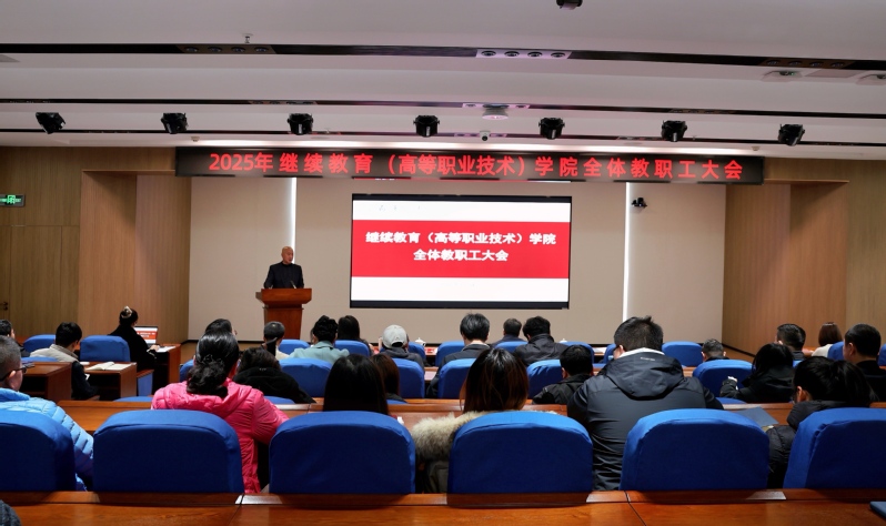 王伟传达了学校干部教师大会校长工作报告精神,并代表学院领导班子作2024年工作总结和2025年工作部署。他指出,2025年是将全面深化改革推向纵深的关键之年,全面深化改革是2025年学校各项工作中最鲜明的主旋律和主基调。他强调,学院要不断完善治理体系,提升治理能力,继续深化部门协作,增强工作合力,紧紧围绕学校发展大局,创新工作思路举措,提升管理服务效能,共同推动继续教育工作迈入发展新台阶。