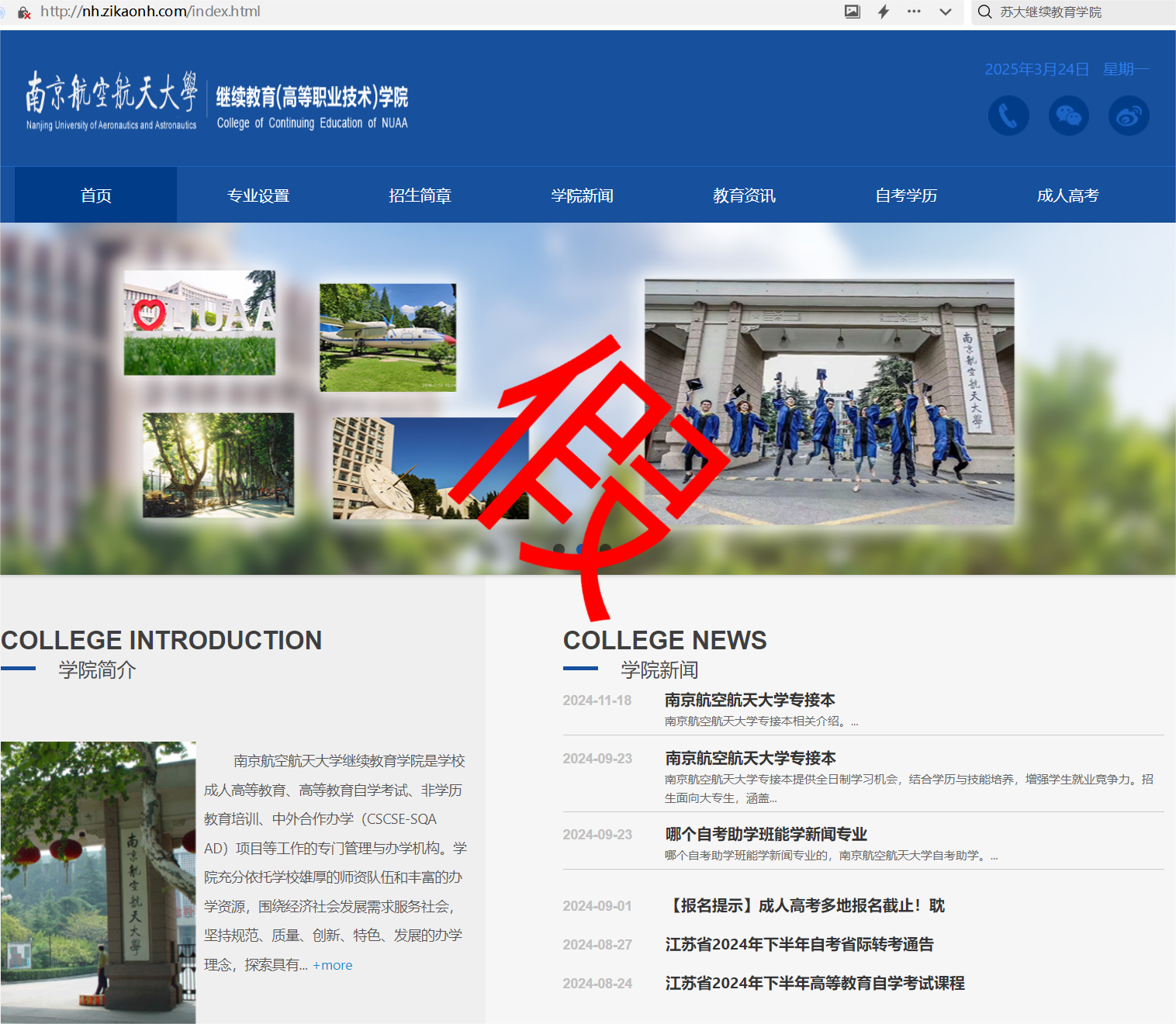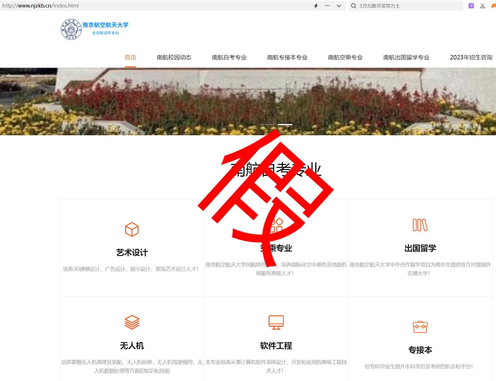 近日,接上级主管部门及考生、家长反映,在抖音、小红书、快手、微视频等短视频平台以及各类网站,存在使用 “南航某老师”、“南航专接本招生”、“南航专接本招生某老师”、“yl8cc永利官网自考本科”等账号进行虚假招生宣传,冒用“yl8cc永利官网”品牌误导学生及家长,给学校的声誉造成不良影响。为维护学校办学声誉,维护我院高等教育自考助学项目健康、平稳发展,保障各位考生的合法权益,我院严正声明如下: