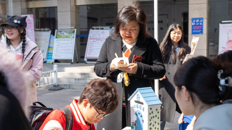 活动期间,学院党委书记刘建成、副书记尹春苹和相关科室负责人等一行走访各活动区,在“心语墙”前阅读学生匿名故事,参与套圈游戏互动,并亲手投递了一封“时光信件”,写下对青年学子心理健康成长的期许。领导们充分肯定了活动“寓教于乐”的设计理念,强调心理健康教育需贴近学生真实需求,让治愈自然发生。