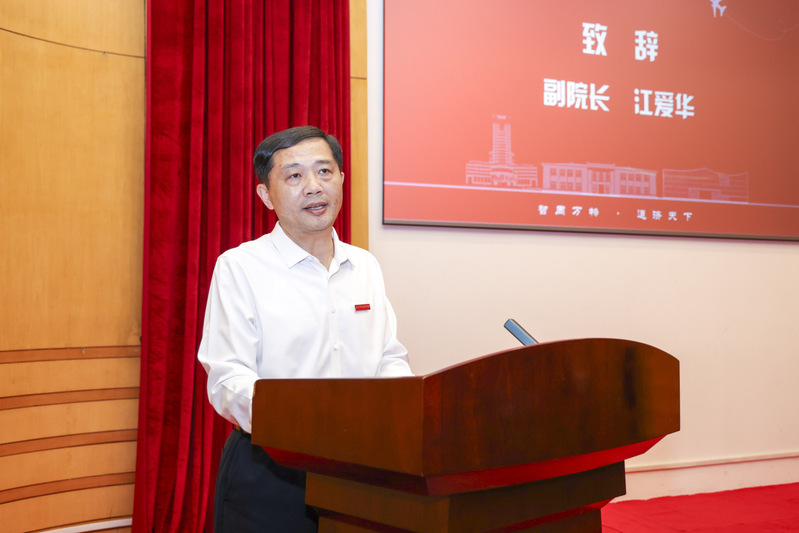 江爱华代表学校致辞,向全体毕业生致以最热烈的祝贺。他回顾了同学们在职学习的两年半奋斗历程,提到大家亲历了C919翱翔蓝天、天舟货运飞船问鼎苍穹的国之盛事,更以数字化工具赋能学习,展现了新时代高等学历继续教育学子“智周万物、道济天下”的担当。他勉励毕业生们传承南航红色基因,以家国情怀铸魂、创新实干筑基、终身学习致远,在服务国家战略中书写华章。
