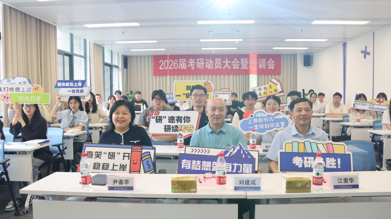 为帮助2026届考研学子明确目标、坚定信心、科学备考,6月11日中午,学院举办2026届考研动员会暨全规划培训。学院党委书记刘建成、党委副书记尹春苹、副院长江爱华、自学考试部主任邹望蠡、学生管理办公室负责人陈晨及相关学生工作人员参加会议,与2026届考研学子共启备考新征程。