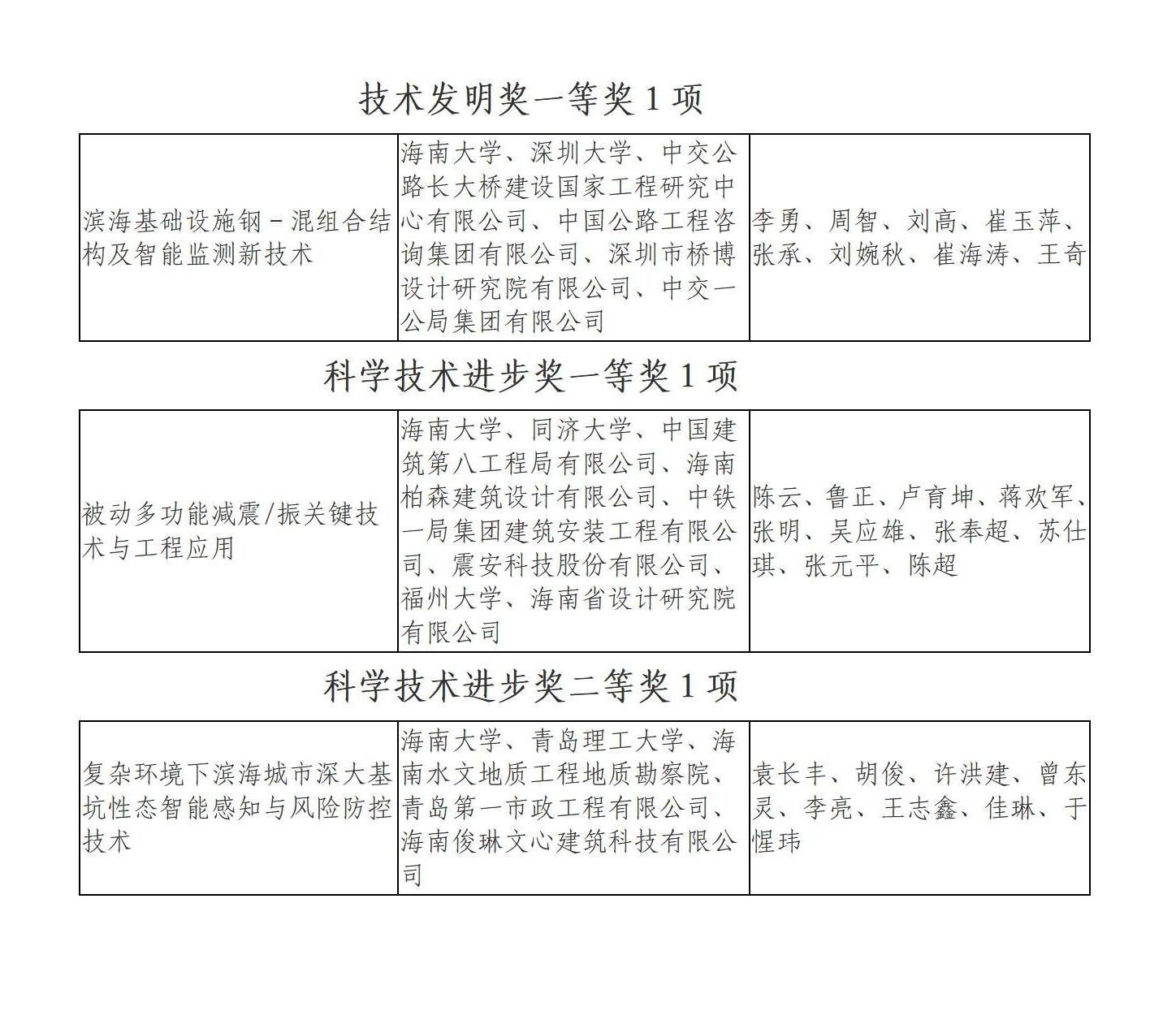 12月5日,海南省科学技术奖励大会在海口隆重举行,一批为海南科技进步做出突出贡献的科技工作者接受表彰。必赢官网作为第一完成单位获海南省技术发明奖一等奖1项、海南省科学技术进步奖一等奖1项和二等奖1项。周智教授(排名第二)及团队完成的《滨海基础设施钢-混组合结构及智能监测新技术》获海南省技术发明奖一等奖;陈云教授(排名第一)等完成的《被动多功能减震/振关键技术与工程应用》获海南省科学技术进步奖一等奖;胡俊教授(排名第二)等完成的《复杂环境下滨海城市深大基坑性态智能感知与风险防控技术》获科学技术进步奖二等奖。