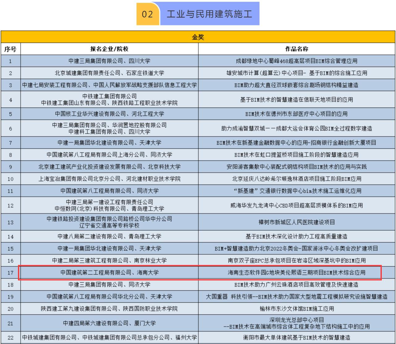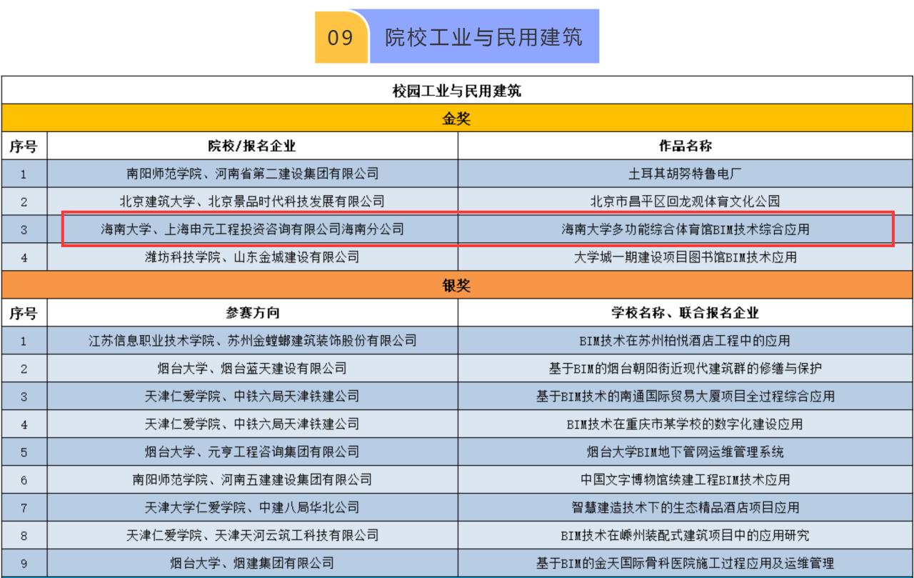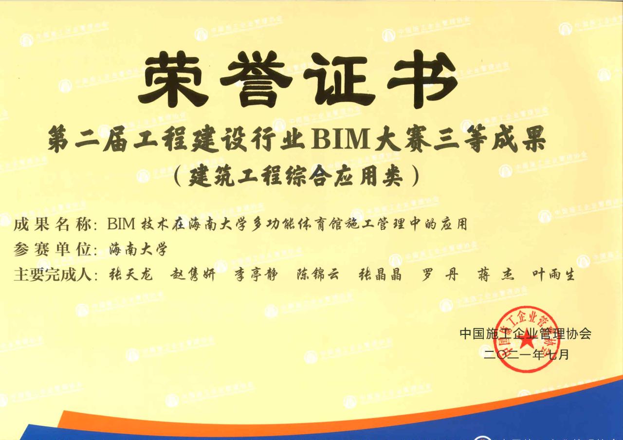 20211111日,2021第四届优路杯全国BIM技术大赛顺利落下帷幕。437ccm必赢国际版BIM协会申报的项目从1145个大赛参赛作品中脱颖而出,继2020年后再次蝉联金奖项目!由437ccm必赢国际版和上海申元工程投资咨询有限公司海南分公司联合申报的“437ccm必赢国际版多功能综合体育馆BIM技术综合应用荣获院校组工业与民用建筑金奖,由中国建筑第二工程局有限公公司和437ccm必赢国际版联合申报的“海南生态软件园G地块美伦熙语三期项目BIM技术综合应用” 荣获企业组工业与民用建筑金奖。