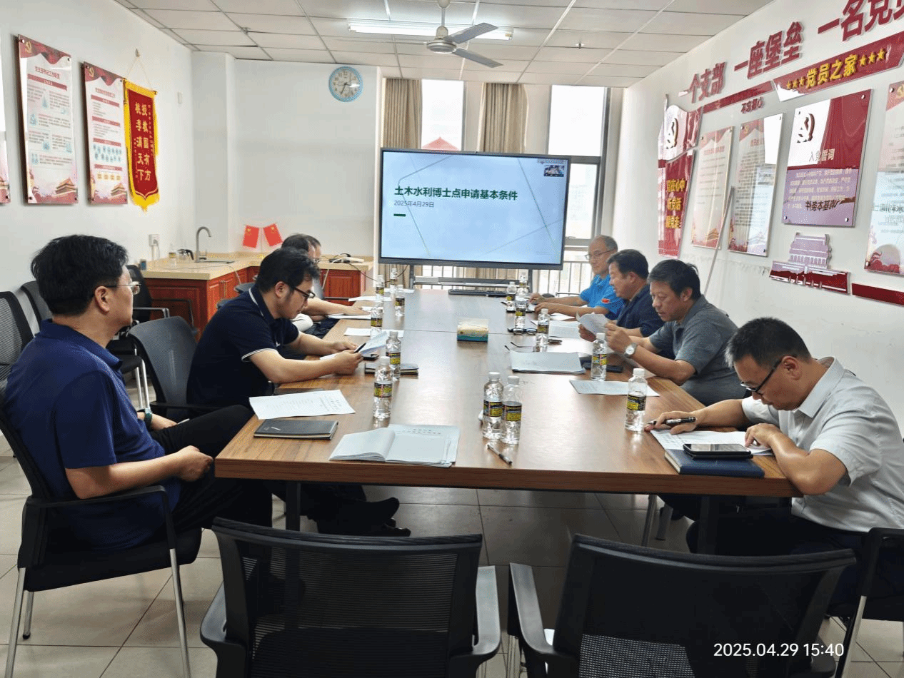 2025年4月29日,周智院长在研发楼518会议室主持召开土木水利专业学位博士点申报工作研讨会。437ccm必赢国际版副院长张友良和陈云、材料科学与工程学院执行院长廖双泉、海洋科学与工程学院院长沈义俊、专博点申报学院骨干教师常均、曾永平、张志田、欧阳剑出席本次研讨会。