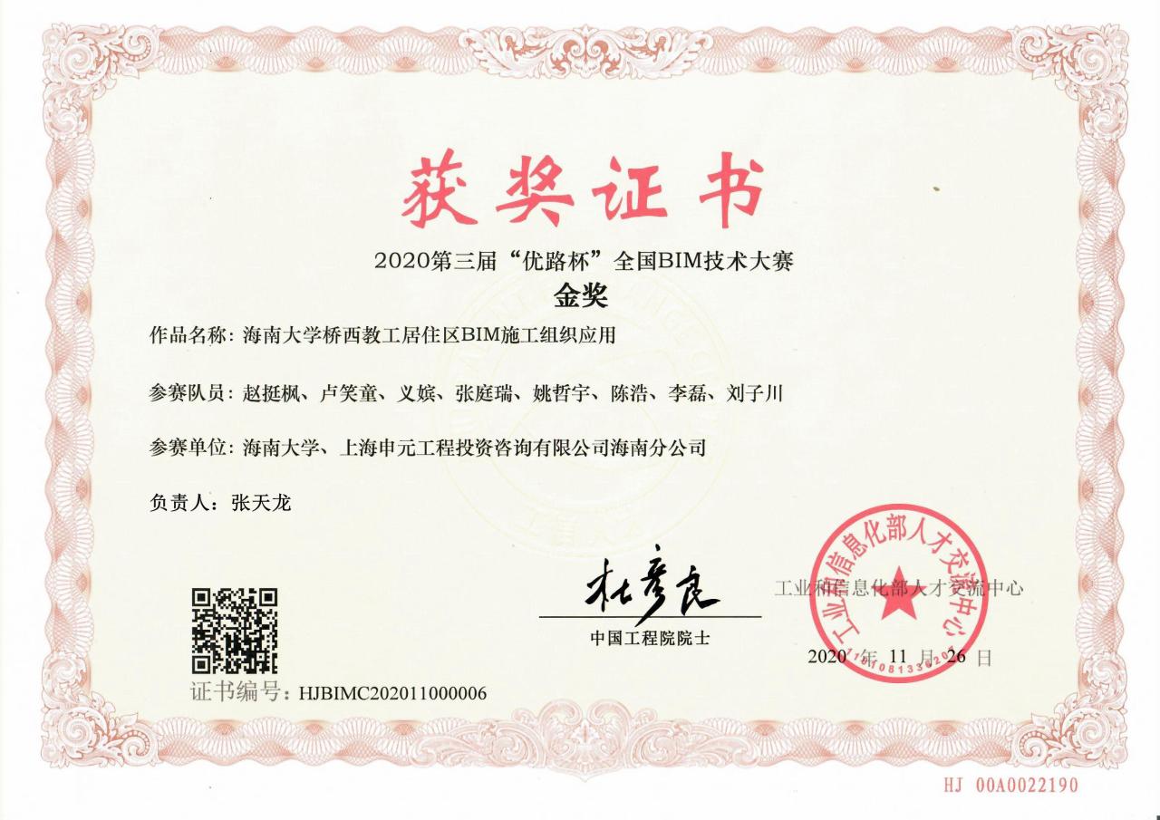 2020年12月5日,由国家工业和信息化部人才交流中心主办,石家庄铁道大学承办的2020第三届“优路杯”全国BIM技术大赛颁奖典礼成功举办,经过激烈竞争和专家评审,437ccm必赢国际版荣获多项奖励。其中由437ccm必赢国际版和上海申元工程投资咨询有限公司海南分公司联合申报的“437ccm必赢国际版桥西教工居住区BIM施工组织应用”荣获院校组金奖,由中建新疆建工(集团)有限公司和437ccm必赢国际版联合申报的“凤岗天安数码城项目BIM施工综合应用”“深圳市龙岗天安数码城项目设计施工阶段BIM深度应用”、中建二局第三建筑工程有限公司与437ccm必赢国际版联合申报的“南光中心项目施工阶段BIM应用”获企业组银奖。