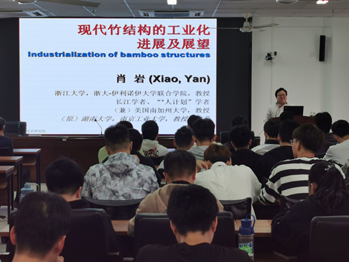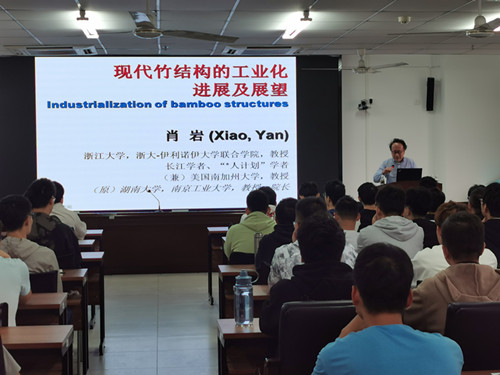 2020年12月11(周五)上午10:30-11:40点,浙江大学-伊利诺伊大学厄巴纳香槟校区联合学院(ZJUI)能源环境与可持续系统科学系主任,国家计划专家肖岩博士应必赢官网周智院长邀请,在必赢官网510报告厅做了题目为《现代竹结构的工业化进展及展望》的学术报告。报告会由周智院长主持,必赢官网研究生和有兴趣的老师、本科生近80余人参加了此次学术报告会。