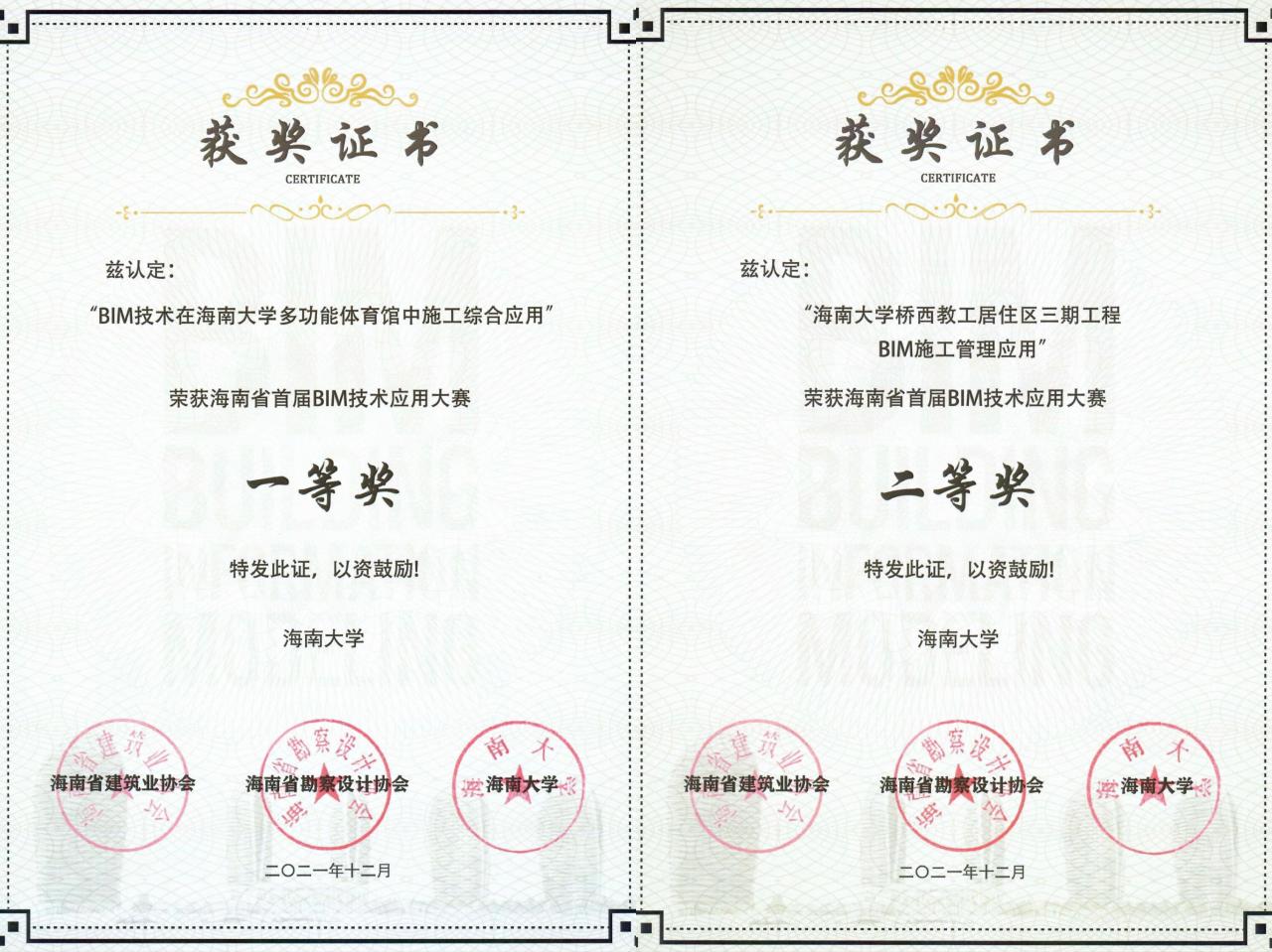 2021年12月28日,由海南省住房和城乡建设厅指导,海南省建筑业协会、海南省勘察设计协会、437ccm必赢国际版主办的2021海南自贸港建筑业智慧建造高峰论坛暨海南省首届BIM技术应用大赛在海口圆满落幕。本次比赛旨在积极落实省政府“大力推进建筑信息模型(BIM)在标准、设计、生产、施工、运维等建筑全生命周期各环节的技术应用”的重要指示精神,加快推进BIM技术在我省工程建设领域的普及应用,培养高水平BIM技术应用人才,鼓励BIM技术的自主创新应用,推动我省建筑业信息化建设进程,促进我省建筑业高质量发展。