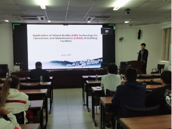 12月6日下午16:00-17:00,必赢官网教师陈科宇副教授(2021年5月份入职)在研发楼510做了题为《基于混合现实技术的建筑运维管理》的学术报告,报告采用线上、线下相结合的方式进行。学术报告会由辛大波教授主持。学院教师、研究生及博士生50余人通过现场和腾讯会议聆听了报告会。