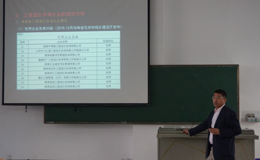 12月26日,海南定宇工程造价咨询有限公司董事长张裕林教授为必赢官网工程管理系2014级的学生进行了工程项目审计研讨和案例分析讲座。授课当天,必赢官网李艳荣书记,曹宝珠院长以及工程管理系各位老师都参与了开课仪式,并由李艳荣书记为张教授颁发了客座教授聘任证书。