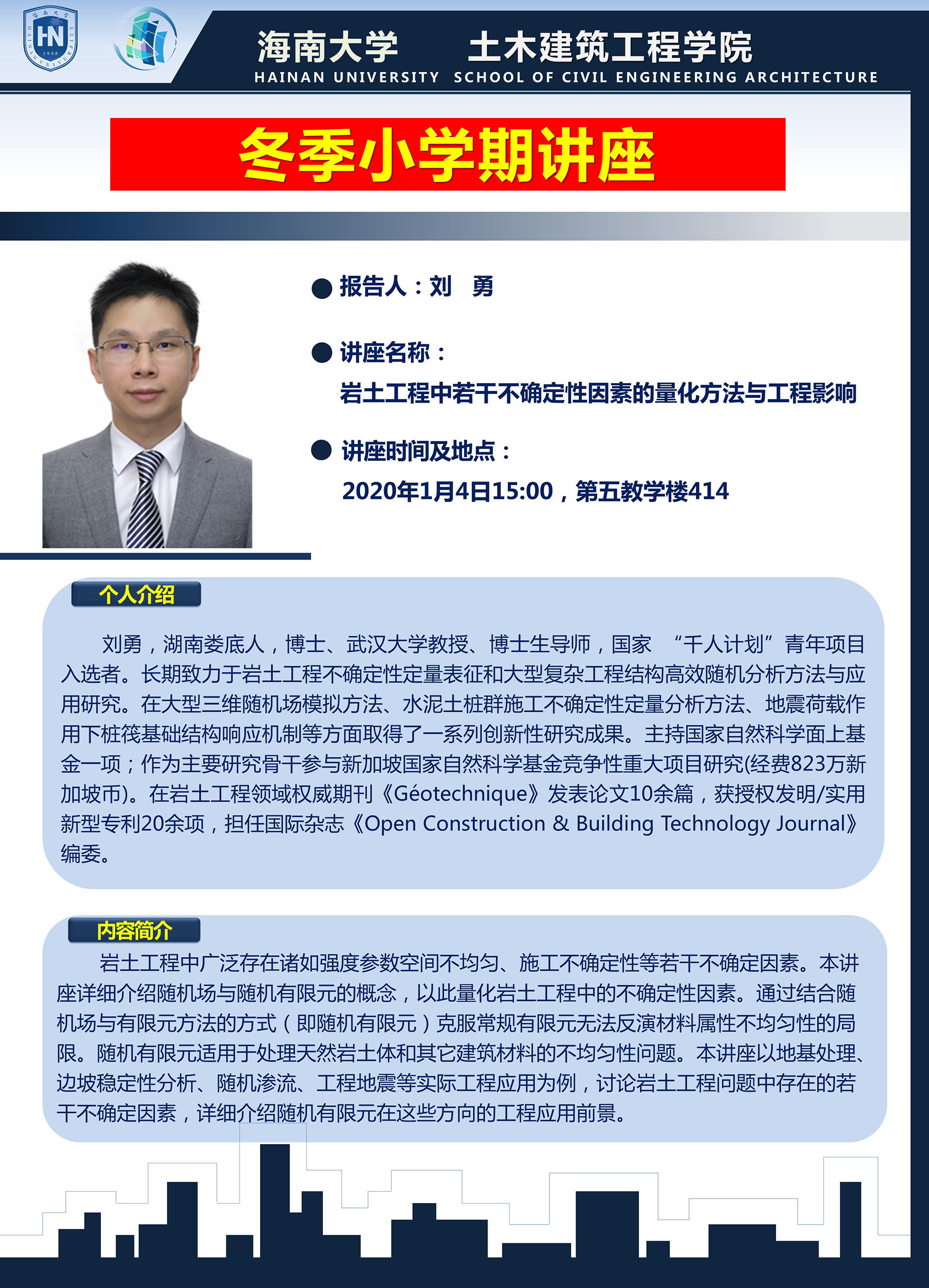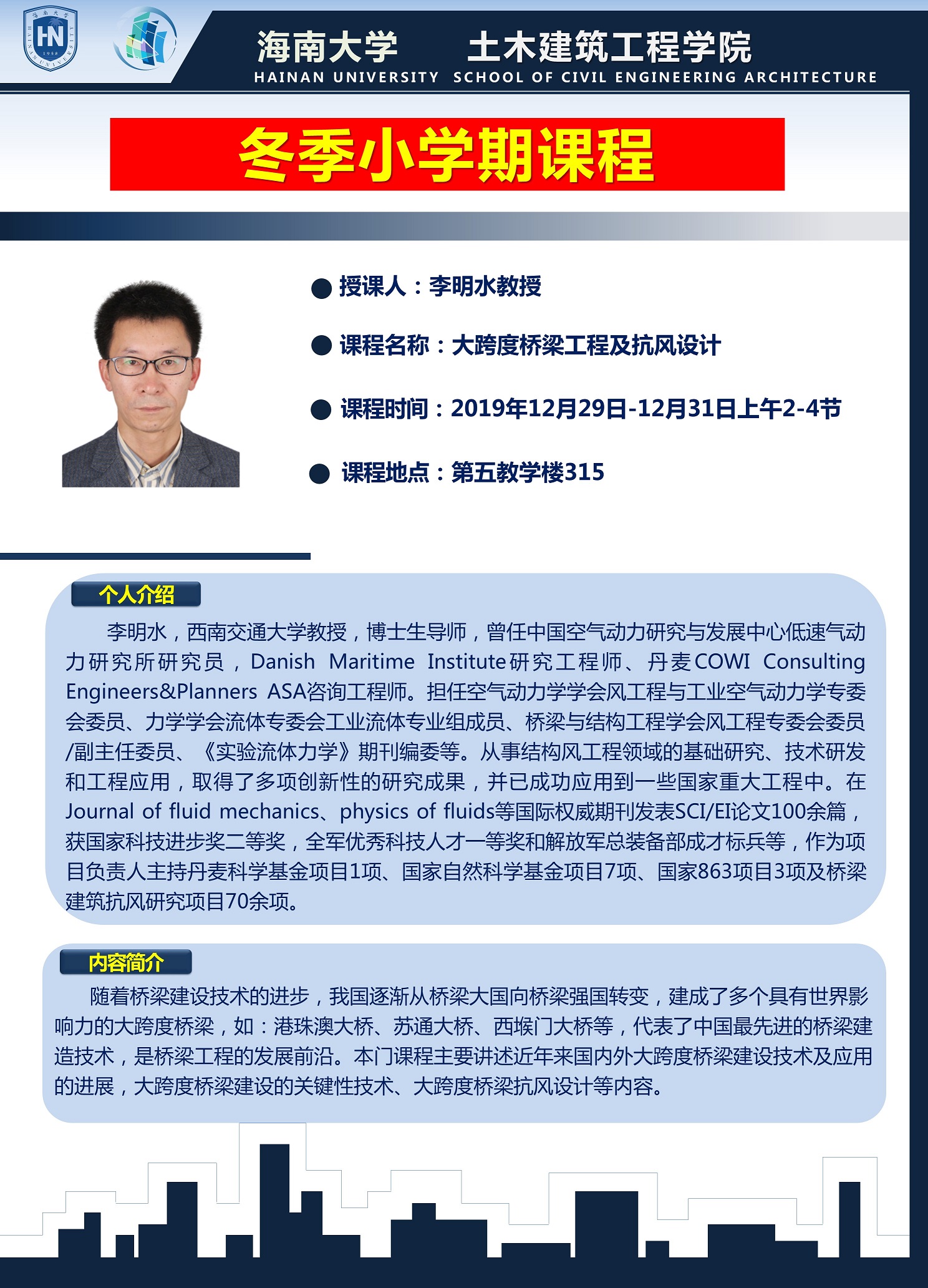 本学院2019-2020学年冬季小学期时间为2019年12月30日至2020年1月12日,地点为437ccm必赢国际版海甸校区。