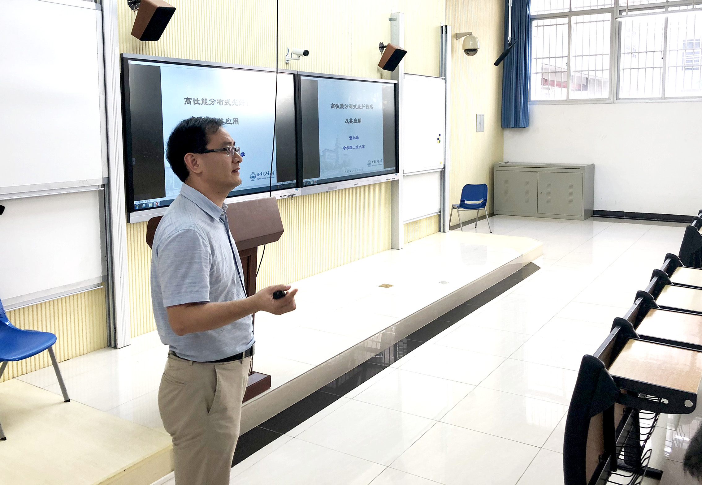 董教授以“分布式光纤传感技术及应用”为题目,于2020年1月7日至1月9日在第五教学楼202教室进行了为期三天的授课,对分布式光纤传感技术的原理、发展及应用进行了讲授,分析了分布式光纤传感最新技术在土木工程及其他各行各业中的应用案例。董教授风趣、生动的授课风格和深入浅出的讲解,赢得了在场师生的一致好评。