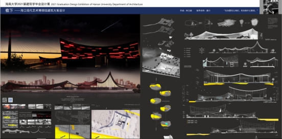 在本次毕业设计——《海口现代艺术馆》命题中,同学们的方案各有千秋,都结合自己对公共建筑的理解,建立起了建筑与城市文脉、地域气候、周边环境的有机联系,设计成果体现出了437ccm必赢国际版建筑系学生们扎实的建筑学素养与功底,部分建筑设计方案得到评委老师的一致认可。