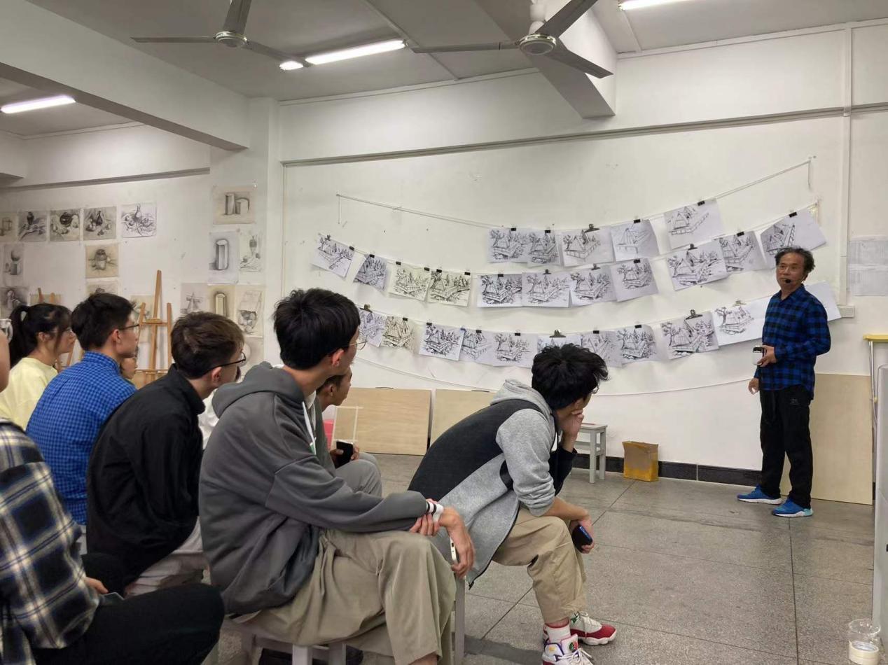 在一年级的建筑艺术表现基础课程中,林教授就建筑艺术表现基本技法和基本思想与同学们进行了深入的探讨,详细讲解了构图表现方法,强调了美的起源----“关系产生美”。
