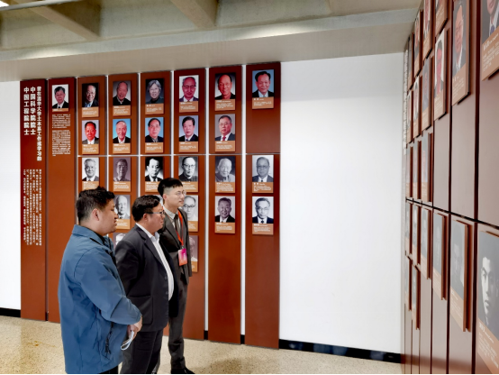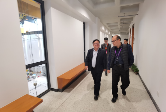 周智院长(左一)与清华大学土木工程系系主任冯鹏教授(右一)调研结构工程实验室