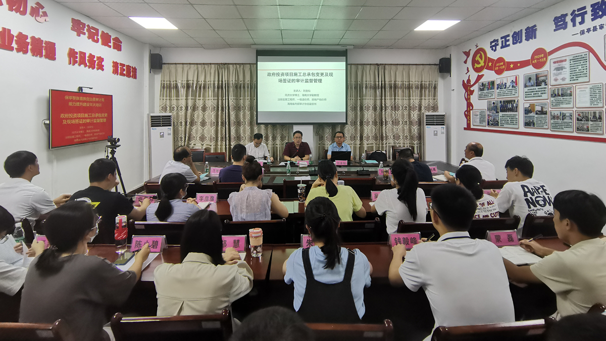 6月9日下午,在保亭县审计局会议室,二十余人参加讲座活动。政府投资项目的工程结算超设计概算是普遍存在的问题,如何消除?办法很多,而其中管控工程变更是一个非常重要的环节。刘金灿老师针对工程审计业务的工作需要,并且结合业务干部的实际知识背景,选择《政府投资项目施工总承包变更及现场签证的审计监督管理》为讲座的主题,系统的讲授了政府投资工程建设活动的特点、工程变更的内涵及类型、工程变更问题审计治理对策。讲座结束,刘老师与审计局领导、干部互动热烈。审计局干部提出了工作中存在的疑难问题,刘金灿老师逐一解答。审计局局长陈斌表示,讲座就像及时雨,让审计局干部增长了知识,开阔视野,提高了大家分析问题、解决问题的能力,刘金灿老师深厚的理论底蕴、丰富的工程实践经验,令人印象深刻。437ccm必赢国际版与保亭县审计局于2021年5月份订立合作协议,并且开展了实质性合作。审计局委托学院,针对保亭县政府投资工程项目实际情况,开展“施工总承包模式下工程变更及现场变更签证问题的审计治理研究”。