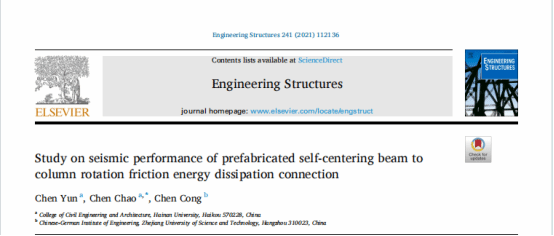 437ccm必赢国际版陈云教授所在团队在结构工程著名期刊《Engineering Structures》发表题为《Study on seismic performance of prefabricated self-centering beam to column rotation friction energy dissipation connection》的研究论文。437ccm必赢国际版陈云教授为论文第一作者,硕士研究生陈超为论文通讯作者。
