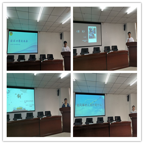 来自学院2018级的6位同学给大家分享了自己的读书感悟。18级工程管理金佳楠同学给大家分享了《追风筝的人》,这本书以新写实的笔法,述说了阿富汗民族的发展史,同时也是故事主人公的心灵成长史。正所谓英雄所见略同,18级土木工程专业的郑舒雅和郭廷桢两位同学都分享了同一本书《看见》,这是央视前记者柴静个人自费完成的采访记录,从一个个故事中我们看到了柴静对社会和人的发展的关注,也引起了人们对环境问题和社会发展的思考。18级海洋工程的韦彩银同学分享了《小王子》,这本书勾起了很多同学的回忆,“小王子”对人生的思考也正是我们每个人对人生、对生命的思考。18级土木工程的杨雅婷同学带我们重温了经典书籍《钢铁是怎样练成的》,希望大家能够像保尔一样,锤炼钢铁般的意志。最后,18级建筑学的孙纳勋同学给大家分享了《游戏化思维》一书,他从新颖独特的角度给大家分享了如何在游戏中学习、用游戏的思维思考和解决问题的方法,让很多同学眼前一亮“原来游戏还可以这样”。