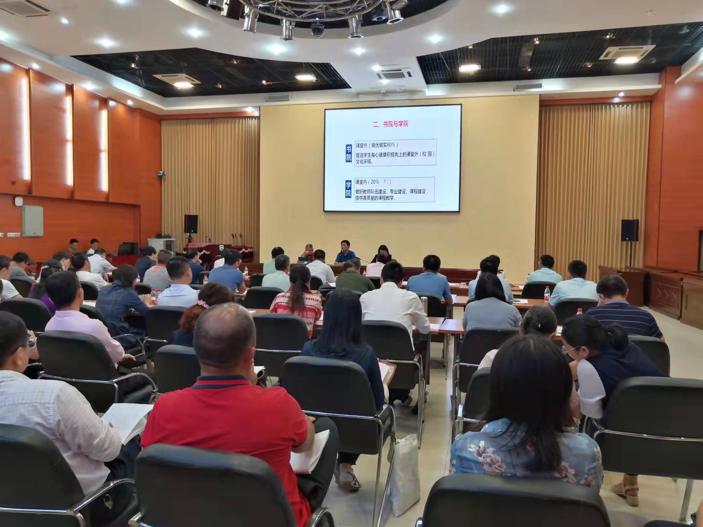 首先,胡新文副校长向大家介绍了学校完全学分制、书院制改革工作推进情况,并详细介绍了书院制改革的整体思路。他强调书院制改革的核心是导师制,要通过书院这个平台,实现导师对学生的全方位指导,帮助学生更好地成长成才,积极营造学校良好的教书育人氛围。他要求各学院要及时将完全学分制和书院制改革的方案向广大师生进行宣传,确保人人知晓,人人参与。