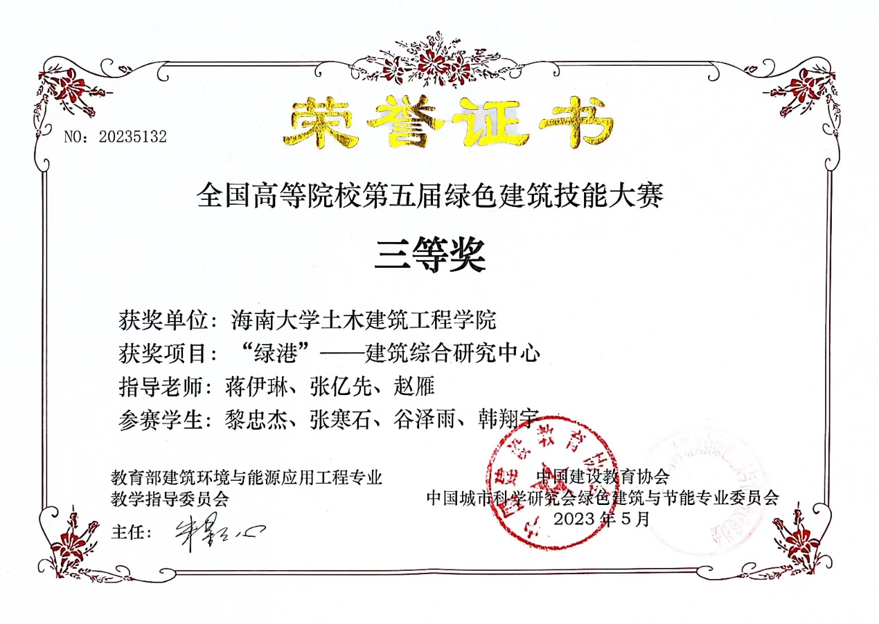 近日,由教育部建筑环境与能源应用工程专业教学指导委员会指导、中国建设教育协会与中国城市科学研究会绿色建筑与节能专业委员会联合主办的“第五届全国高等院校绿色建筑设计技能大赛”获奖结果揭晓。437ccm必赢国际版建筑系设计作品荣获三等奖1项、优秀作品奖1项。参赛学生是建筑系2020级学生黎忠杰、张寒石、谷泽雨、韩翔宇、许珑驰、廖荟、孙晓研、陈慧欣,指导教师是蒋伊琳、张亿先、易法殊、赵雁。