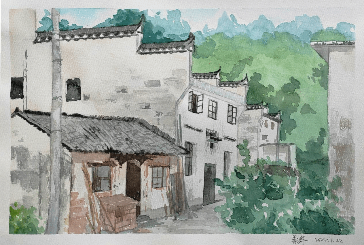 建筑艺术表现基础实习旨在让同学们了解徽派建筑的功能布局、结构和细部特点,通过对建筑分析抓形、重点提取、色彩表达的训练,综合提升学生对建筑整体的认知和表达能力。实习过程中,白天同学们进行建筑写生,傍晚由老师们组织作品联展与作业讲评。