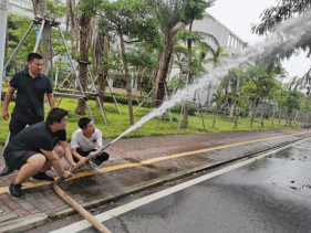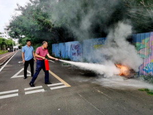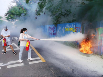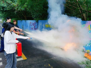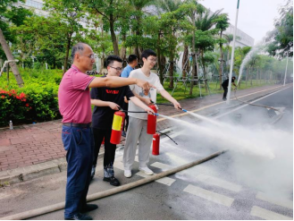 林德鑫老师为现场师生演示灭火器材的使用。消防知识讲解后在研发楼南侧空地进行了消防设施设备操作技能的现场培训,师生们学习了灭火器、消防水带的正确使用方法,并现场使用灭火器进行了消防灭火演练,提高了火灾防范能力。