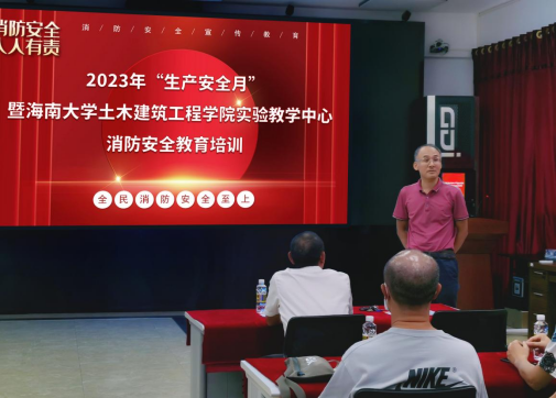 为贯彻落实安全生产方针和教育部关于加强学校安全工作的要求,根据《海南省教育系统2023年“安全生产月”活动方案》的通知要求,为进一步提高全院师生的消防安全意识和火灾防范能力,减少安全事故发生,确保全院师生的生命和财产安全,土木工程实验教学中心于2023年6月14日联合保卫处在李运强A栋实验室进行了一次消防安全教育培训,共计60余人参加了本次培训。