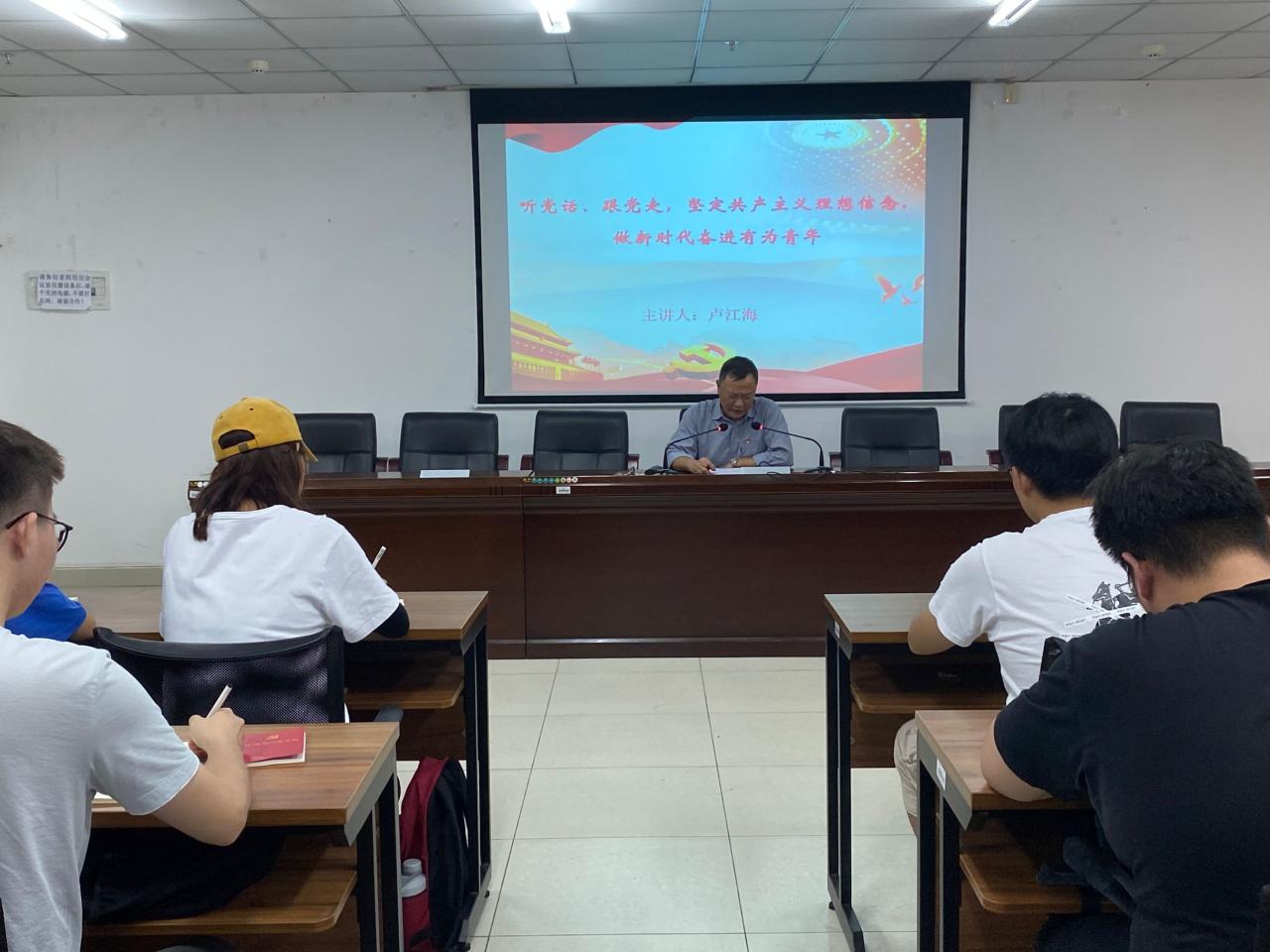 开班仪式结束后,学院党委书记卢江海以“听党话、跟党走,坚定共产主义理想信念,做新时代奋进有为青年”为主题为学员讲授了第一课。首先,卢书记通过我国抗击新冠肺炎疫情工作,指出指出我们党是以人民为中心的党,我党的宗旨是全心全意为人民服务,并且表扬了在疫情防控中表现突出的党员同志。之后,卢书记着眼海南自贸港建设,讲述了海南自贸港建设的意义、特色、目标以及海南自贸港建设范围等内容。第三部分,卢书记引用了习近平总书记在纪念中国人民志愿军抗美援朝出国作战70周年大会上的讲话语录,回顾了抗美援朝的历史,以毛岸英为例,讲述了抗美援朝中青年党员的宝贵精神。最后,卢书记引用了习近平总书记对于当代青年的四点希望即爱国、励志、求真、力行,作为对于党员发展对象以及入党积极分子的要求与期望。